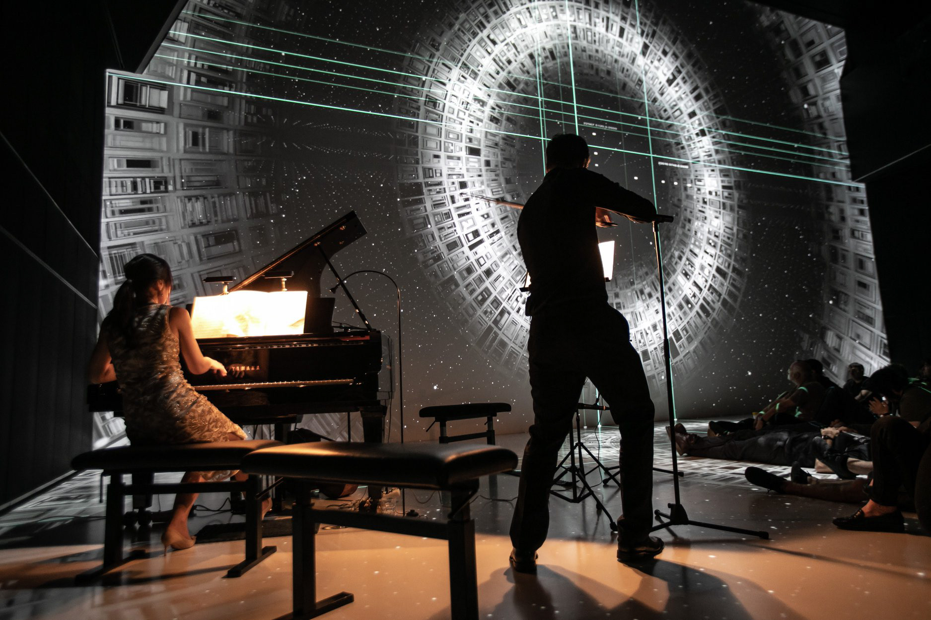 Ouchhh created a cognitive performance that we generated real-time brain waves at the Deep Space with the South Korean/German trio. At a concert which we visualized the changes in brain wave activities in real-time, we transformed the Delta, Theta, Alpha, Beta and Gamma brain waves into a real-time concert experience that is wrapped around by generating the data about emotion, focus & attention, some auditory and neural mechanisms with electroencephalogram (EEG).